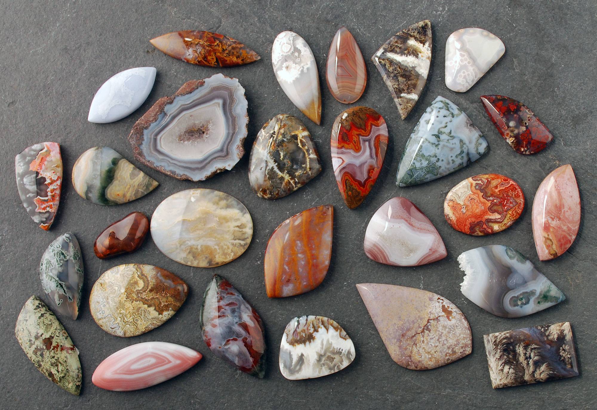 Welcome to my newsletter! And Welcome Spring! I love spring; it is my favorite season, filled with promise, colors and expanding times of blue sky and sunshine. My mood improves, and my creativity grows along with it. I hope you too are feeling energized with the changing season. In this issue, we will begin to explore the wonderful world of agates. I will also talk about my love of piercing, in particular behind stones. What is piercing, you ask? Read on and find out! Barbara Kay Jewelry News I was recently approved as a vendor for Dennis 7 Dee’s Nursery’s (formerly Shorty’s) “Spring Makers Market”. This will be a fun event! If you live in the Clark County, Washington – or even Portland, Oregon – area, come see me. You’ll have a chance to enjoy plants as well as a variety of handmade items. Here are the specifics: Date: Saturday, April 20, 2024 Stone of the Month: The humble, yet oh so beautiful and varied Agate I love agates. Agates have an incredible range of colors and patterns, as you can see in the very small selection above. And it is a fairly hard stone, so it’s great for jewelry – both for creating with it and for wearing it. Agate is a type of chalcedony. Chalcedony is a broad name for materials composed of microcrystalline quartz; both agate and jasper are in this group. Microcrystalline quartz is made up of crystals that are so small a microscope must be used to see them individually – up to 30,000 in an inch. Other types of quartz can have crystals as large as inches or even feet. Agate is a translucent to semitransparent chalcedony. Some, as you can see in the picture, don’t look translucent or semitransparent, although if they were thinly sliced you should be able to see light through them. Within the agate family itself there are many different kinds. In future issues, I’ll explore some of those specific kinds, but for now here’s an overview of the entire family. It is believed that the agate was first identified and named around 371 to 287 BCE by early Greek earth scientists. It was found along what is now known as the Dirillo River in Sicily. This river was called “Achates” or “Acate” by the ancient Greeks, thus the name “Agate.” Agates are found all over the world. Some locations produce very specifically colored and patterned stones, allowing fairly easy identification. These various colors and patterns occur because of the different minerals and chemicals in the environment, which brings us to how agates are formed. As I researched this, I discovered that there are actually a few different theories about agate formation. The theories do seem to agree that agates mostly began in volcanic rock, and specifically, in cavities formed by lava that flowed, then cooled and hardened with gaps due to gases trapped inside. The agates began as silica gel that was either already in place in these cavities, or entered with groundwater. This silica gel slowly hardened and crystallized as quartz micro-crystals, then was coated with new silica gel which hardened again, and so on. This is what caused the banding that is seen in most agates. The silica gel by itself is a drab gray. As you can see in the picture, agates now show a huge variety of color. This color is caused by sub-microscopic metal ions that were able to seep in between the quartz crystals. Some of the more common metals are: iron oxide, which causes red, brown or yellow colors; manganese oxide that creates purple or pink; chlorite which causes green colors. There are of course others – and other types of minerals – which contribute to color. As you can see in the picture above, some agates show very regular banding. Still others are more chaotic looking, or have uneven, wavy bands. It is likely that the more uneven patterning was caused by pressure and heat. Those micro-crystals of quartz that make up the silica gel release heat as they crystallize, which in turn creates pressure within a closed cavity. This pressure is believed to have pushed and pulled the banding into irregular shapes. I imagine other things came into play as well over the millions of years during which agates were formed. Sometimes the banding of silica gel is incomplete, leaving a hollow area in the middle. Often these hollows have crystals of various kinds growing inside, which we know as druzy (or drusy). Some agates don’t have obvious banding, but instead have mossy or dendritic inclusions. We'll explore those types of agates in a future issue. One of the fun aspects of agates is that you can find them yourself, unlike many semi-precious stones. The best places to look are in areas where erosion happens, for example on beaches, rivers, streams and dry river beds. The erosion makes the agates more obvious, as any outer sediment has been worn away. Areas where there has been volcanic activity in the past are especially good. Agates aren’t always obvious from the outside; if you see a rock that looks banded or layered, it’s possible there is agate inside. Often agates that haven’t been completely worn down by sand or water have a knobby rock appearance on the outside due to sediment coating the agates once they were exposed from the original lava cavity. I make a lot of jewelry with agates. Here are just a couple of pictures; you can see more if you go to my shop and search "agate". And good luck hunting for agates yourself! Agate information sources: Secrets behind the stones My first metalsmithing teacher showed me a pendant he had made that had a little design cut out behind the stone. Why? I asked him – why decorate the back? His answer was that just in case the pendant flipped over, it would look nice on the back. That kind of made sense, but it still didn’t seem worth the trouble. My sawing skills at the time were still at the beginning stages so I didn’t even consider doing that as part of my process. However, over time and as I got more proficient with my jeweler’s saw, I decided 