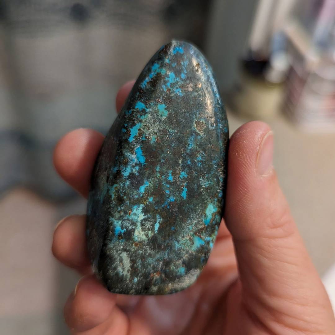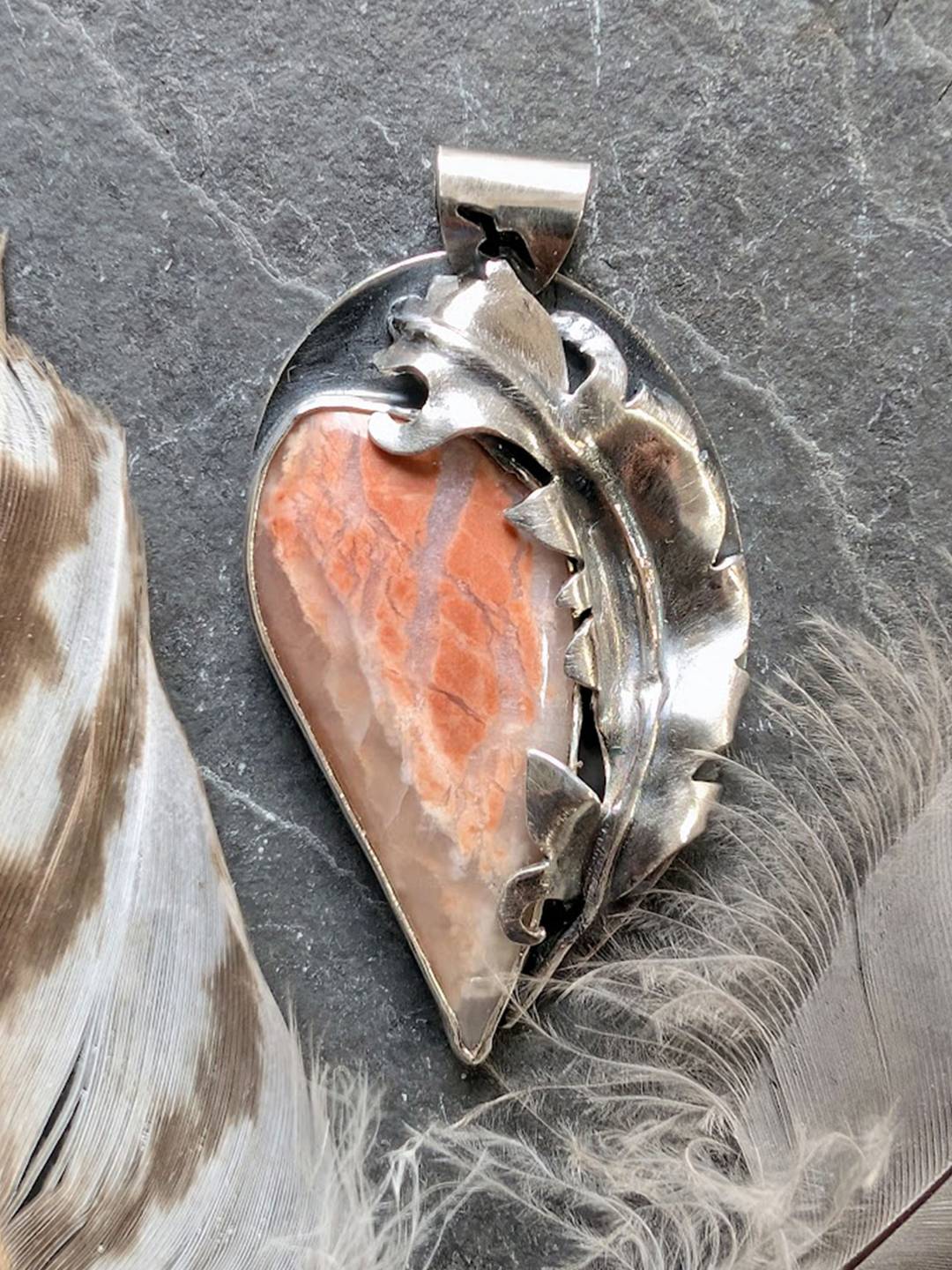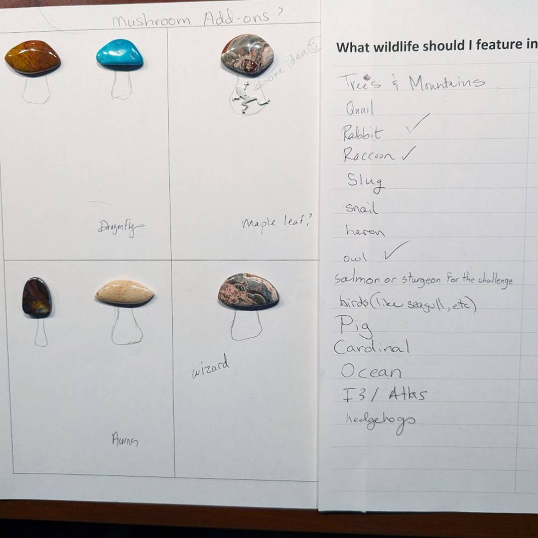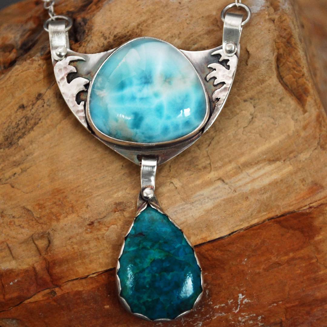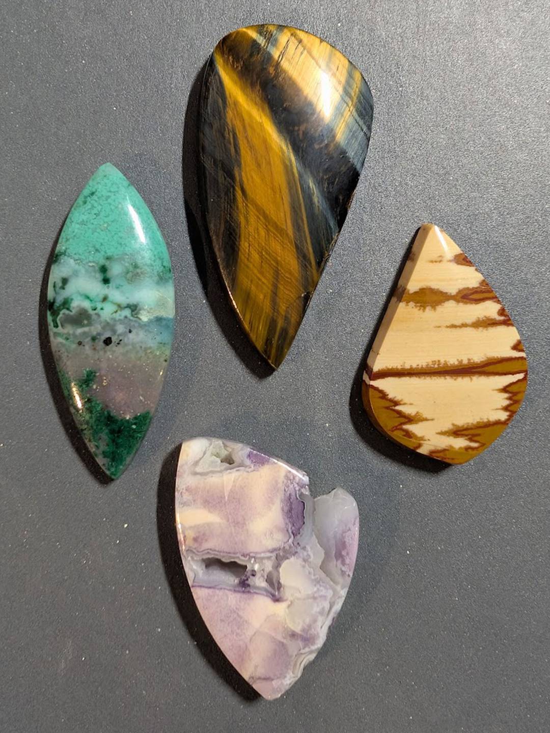 Welcome to my newsletter, both new and continuing subscribers. I hope you enjoy it! Barbara Kay Jewelry News The Clark County Open Studios tour is now over for this year. I had a wonderful weekend, meeting new people and also spending time with a few returning visitors. I do love talking about my passion for metal-smithing and creating jewelry. I have one more live event this year: The Laurelhurst Winter Bazaar, which will take place on December 7 from 10 to 4. The bazaar is at the Laurelhurst school - 840 NE 41st Ave in Portland, Oregon. It's a terrific bazaar - all of the vendors are vetted, and all things sold are hand made and of good quality. It's a great pre-Christmas bazaar! Audience Participation and Challenges One thing I love to do at the studio tour is to include visitors in my creative process. It's hard for me to find a way for people to actually "do" something with the tools, so I ask them to participate by choosing my next projects. This also challenges me as I often get ideas and stone choices that I might not select myself. I offer three ways to give me my idea challenges. I randomly choose cabochons (shaped and polished stones) from my collection. I try to pick out various sizes, colors and shapes and try not to let my own feelings about them come into the decision. Studio visitors can vote on their favorite two or three. I also ask for their ideas on wildlife (or other animals/aspects of nature) to use on future projects, and for ideas of things to include with future mushroom pendants. Based on the number of dots, the group of stones on the left below will become my first projects after the ones I'm currently working on. From left and around clockwise: Chrysocolla-Malachite; Tiger's Eye; Owyhee Picture Jasper; Tiffany Stone. They each earned seven to nine votes. The stones on the right will become the group after that: (left to right) Golden Eclipse Malachite; North Ridge Plume Agate (from the same area as Graveyard Point); Boulder Opal. They each earned five or six votes. A number of stones received three votes each; I will keep them in mind for the future. Based on the list of ideas, (and keeping in mind animals I've featured in the past) I've decided that my next animal/wildlife jewelry will include: raccoon, salmon (or possibly sturgeon), hedgehog, and in honor of a little girl who visited with her stuffed pig, a pig. Charlotte's Web keeps creeping into my mind. I also got a request for ocean themed jewelry, so we will see what I can do about that. I haven't really decided on the mushrooms, yet - but I think I have enough projects to keep me going until well into next year! Current Projects If you saw the email I sent out before the tour, you saw a few groups of stones that I am currently working on. Three of those stones were planned for "starry night" pendants. They are now in progress; I have cut out all of the little stars and other components that will be added alongside each stone. The next step will be to sand and file everything - and yes, I even file the edges of those little bitty stars, using very small "needle" files! I also showed you a few stones ready to use for rings and cuffs; they may be put on hold for a bit as I will be working on filling in "holes" in my inventory for the Laurelhurst Bazaar. Stone of the Month: Chrysocolla If your favorite colors include green and blue and all shades in between, then you will love chrysocolla. As you can see in the picture, it can have an amazingly vivid aqua color that is truly eye catching, as well as softer turquoise shades. Chrysocolla is one of a number of minerals that form near copper, which is what gives chrysocolla its color. Chrysocolla, in fact, is so prevalent around copper ore that it has been used by miners and geologists as an indicator mineral; in other words, where Chrysocolla is found, there is a good chance that copper deposits will also be found by digging deeper in the same location. The name Chrysocolla (pronounced kriss-oh-KOL-uh) comes from the ancient Greek 'chrysos' which means gold, and 'kolla' which means glue. It is thought that the name referred to it being used as an ingredient in gold solder (or possibly the flux used in soldering), although tests of ancient gold artifacts have not definitely proved that. Chrysocolla was formed when very hot copper-bearing fluids interacted with various types of rock, or when hot mineral and silica rich fluids flowed through and interacted with copper containing rocks. As with many of the semi-precious stones we love, Chrysocolla primarily formed where there was volcanic activity which created the high heat necessary. It developed in three different forms. One was as botryoidal (or globular) masses. This occurred when the liquid mineral grew around "nuclei" such as sand or dust particles - very similar to pearl formation. This resulted in shapes like clustered grapes. It sometimes formed as crusty layers on the surface of rocks, and also as veins where the copper rich fluids filled in cracks in rocks. Chrysocolla has not typically been mined for itself; it is rather a by-product of copper mining. It can be found anywhere where there is copper and especially where there was volcanic activity. Some of the major deposits can be found in Arizona (and other southwestern states in the US), Democratic Republic of Congo, Peru, Australia and Mexico. These pictures show chunks of quartz and other rock with chrysocolla in them. These stones were collected in SW Washington by my daughter - photos are courtesy of Erin Secrist. The bottom right picture shows how beautiful Chrysocolla and its host rock can be when polished. Chrysocolla is a soft mineral; pure chrysocolla is generally too soft for cutting and polishing into stones meant for jewelry. But fortunately for us, it often forms alongside other minerals which add durability and hardness. Other copper bearing minerals that are often found intermingled with chrysocolla include Malachite (green), Azurite 